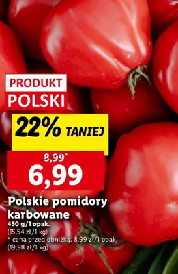 Zastanawiasz si臋, gdzie kupi膰 i ile kosztuje produkt Pomidory karbowane polskie? Regularnie sprawdzamy, czy jest promocja na ten produkt w Biedronka, Lidl, Kaufland, Auchan, Netto, Makro i innych sklepach. Aktualnie posiadamy 4 oferty promocyjne na ten produkt. Ceny zaczynaj膮 si臋 od z艂!