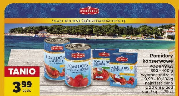 Przegl膮daj oferty promocyjne na produkt Pomidory krojone z bazyli膮 i oregano Podravka