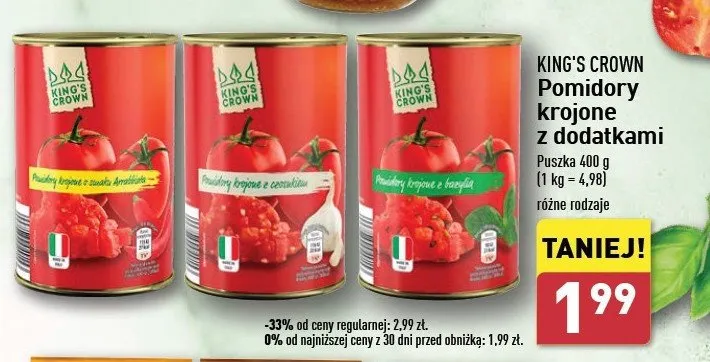 Ile kosztuje Pomidory krojone z czosnkiem King's crown (aldi)?