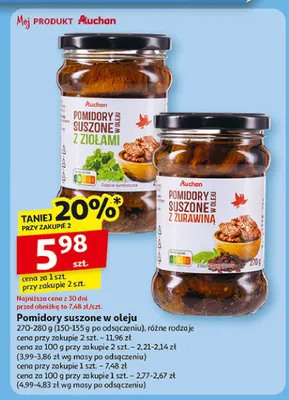 Gdzie mo偶na tanio kupi膰 produkt Pomidory suszone w oleju z zio艂ami Auchan r贸偶norodne (logo czerwone)?