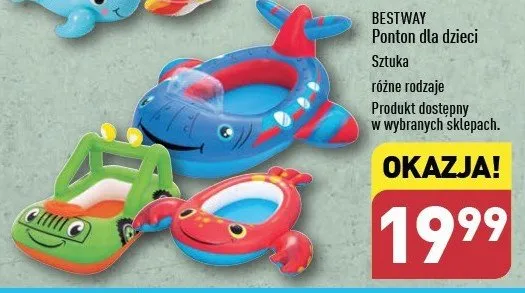 Cena produktu r贸偶ni si臋 w zale偶no艣ci od wybranego sklepu. Niestety nie posiadamy danych o aktualnych promocjach, jednak w艣r贸d archiwalnych ofert Ponton 1 osobowy Bestway kosztuje od 19,99 z艂.