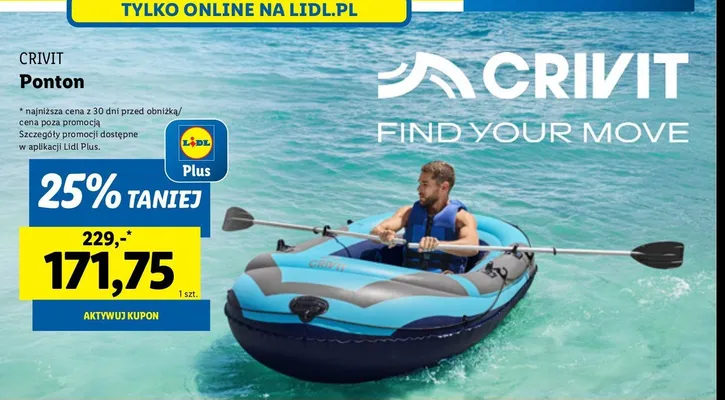 Gdzie mo偶na tanio kupi膰 produkt Ponton 272 x 130 x 56 cm z wios艂ami Crivit?