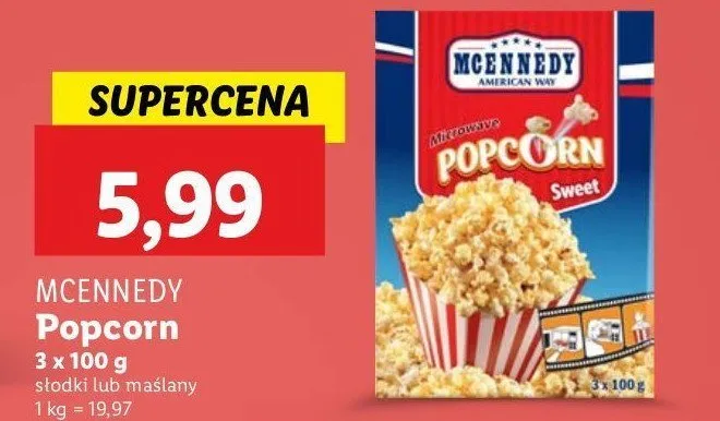 Przegl膮daj oferty promocyjne na produkt Popcorn do mikrofal贸wki s艂odki Mcennedy