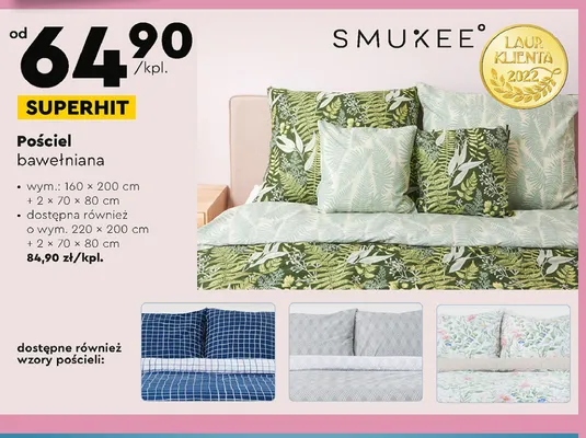 Przegl膮daj podobne oferty promocyjne do Po艣ciel bawe艂niana z jerseyu 220 x 200 + 2 x 70 x 80 cm Smukee!