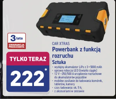 Cena produktu r贸偶ni si臋 w zale偶no艣ci od wybranego sklepu. Niestety nie posiadamy danych o aktualnych promocjach, jednak w艣r贸d archiwalnych ofert Powerbank z funkcj膮 rozruchu Car xtras kosztuje od 222 z艂.