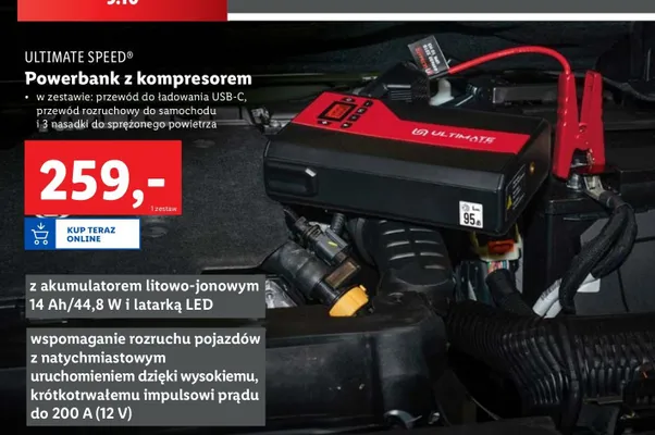 Zastanawiasz si臋, gdzie kupi膰 i ile kosztuje produkt Powerbank z kompresorem Ultimate speed? Regularnie sprawdzamy, czy jest promocja na ten produkt w Biedronka, Lidl, Kaufland, Auchan, Netto, Makro i innych sklepach. Aktualnie nie posiadamy ofert promocyjnych na ten produkt.