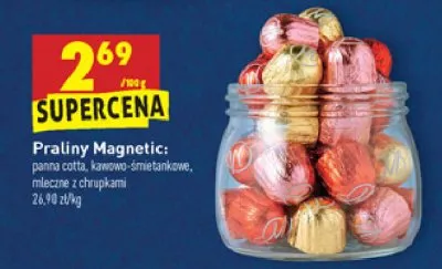 Cena produktu r贸偶ni si臋 w zale偶no艣ci od wybranego sklepu. Niestety nie posiadamy danych o aktualnych promocjach, jednak w艣r贸d archiwalnych ofert Praliny kawowo-艣mietankowe Magnetic kosztuje od 26,9 z艂.