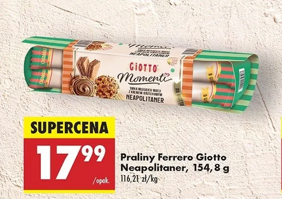 Zastanawiasz si臋, gdzie kupi膰 i ile kosztuje produkt Praliny o smaku w艂oskich wafli z kremem orzechowym GIOTTO? Regularnie sprawdzamy, czy jest promocja na ten produkt w Biedronka, Lidl, Kaufland, Auchan, Netto, Makro i innych sklepach. Aktualnie nie posiadamy ofert promocyjnych na ten produkt.