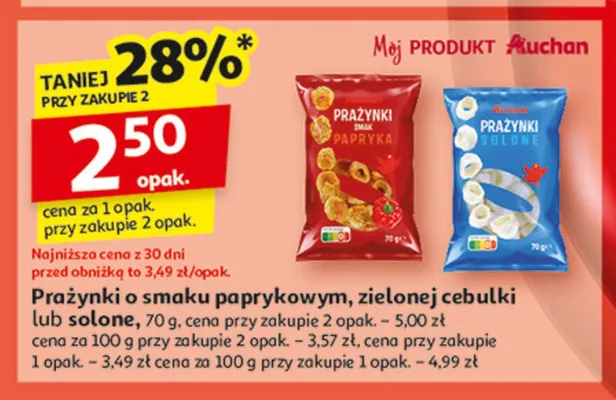 Przeglądaj podobne oferty promocyjne do Prażynki paprykowe Auchan różnorodne (logo czerwone)!