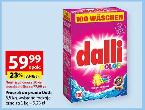 Cena produktu r贸偶ni si臋 w zale偶no艣ci od wybranego sklepu. Produkt Proszek do prania color Dalli mo偶esz kupi膰 w promocji ju偶 od 14,99 z艂 do 109,47 z艂. Najta艅sza oferta, jak膮 mamy w naszej bazie jest z sieci POLOmarket. Proszek do prania color Dalli kosztuje aktualnie 14,99 z艂. Zobacz ofert臋