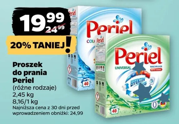 Zastanawiasz si臋, gdzie kupi膰 i ile kosztuje produkt Proszek do prania universal PERIEL? Regularnie sprawdzamy, czy jest promocja na ten produkt w Biedronka, Lidl, Kaufland, Auchan, Netto, Makro i innych sklepach. Aktualnie posiadamy 7 ofert promocyjnych na ten produkt. Ceny zaczynaj膮 si臋 od 19,99z艂!