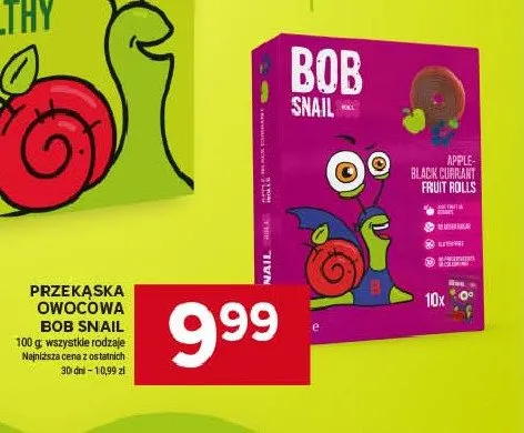 Cena produktu r贸偶ni si臋 w zale偶no艣ci od wybranego sklepu. Niestety nie posiadamy danych o aktualnych promocjach, jednak w艣r贸d archiwalnych ofert Prze膮ska owocowa Bob snail kosztuje od 9,99 z艂.