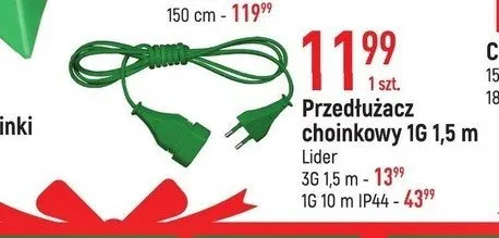 Cena produktu różni się w zależności od wybranego sklepu. Niestety nie posiadamy danych o aktualnych promocjach, jednak wśród archiwalnych ofert Przedłużacz 1-gniazdo 10 m Lider kosztuje od 43,99 zł.