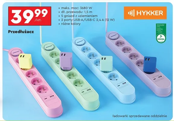 Przeglądaj podobne oferty promocyjne do Przedłużacz 2 usb + 5 gniazd różowy Hykker!