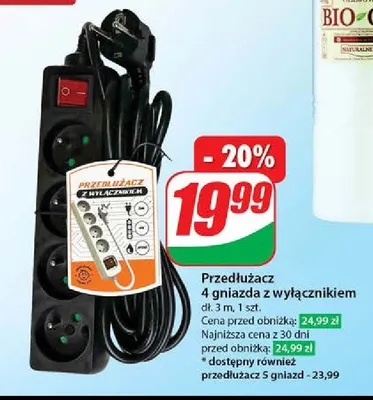 Cena produktu różni się w zależności od wybranego sklepu. Niestety nie posiadamy danych o aktualnych promocjach, jednak wśród archiwalnych ofert Przedłużacz 4 gniazda z wyłącznikiem kosztuje od 3,99 zł do 19,99 zł.