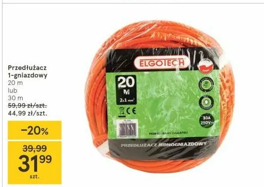 Przeglądaj oferty promocyjne na produkt Przedłużacz jednogniazdowy 30m Elgotech