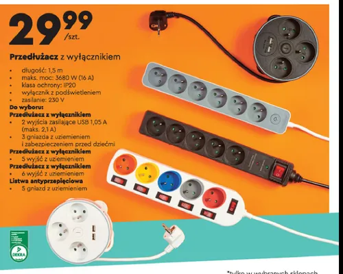 Przeglądaj podobne oferty promocyjne do Przedłużacz z wyłącznikiem 6 gniazd!
