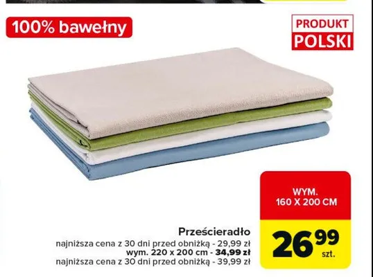Gdzie mo偶na tanio kupi膰 produkt Prze艣cierad艂o bawe艂niane 160 x 200 cm?