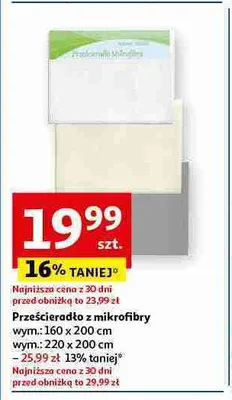 Przegl膮daj podobne oferty promocyjne do Prze艣cierad艂o mikrofibra bez gumki 220 x 200 cm!