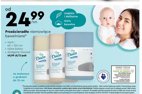 Przeglądaj podobne oferty promocyjne do Prześcieradło niemowlęce z gumką 60 x 120 x 15 cm Dada!