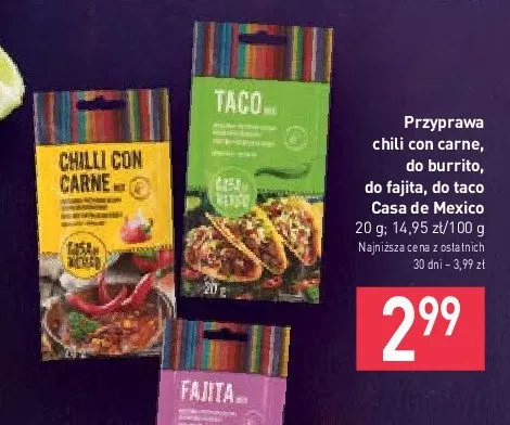 Cena produktu r贸偶ni si臋 w zale偶no艣ci od wybranego sklepu. Niestety nie posiadamy danych o aktualnych promocjach, jednak w艣r贸d archiwalnych ofert Przyaprawa buritto mix Casa de mexico kosztuje od 2,99 z艂 do 3,99 z艂.