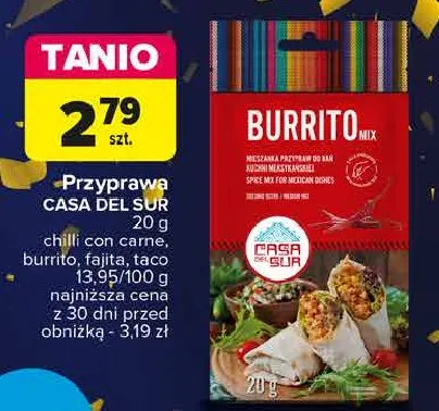 Zastanawiasz si臋, gdzie kupi膰 i ile kosztuje produkt Przyaprawa taco mix Casa de mexico? Regularnie sprawdzamy, czy jest promocja na ten produkt w Biedronka, Lidl, Kaufland, Auchan, Netto, Makro i innych sklepach. Aktualnie nie posiadamy ofert promocyjnych na ten produkt.