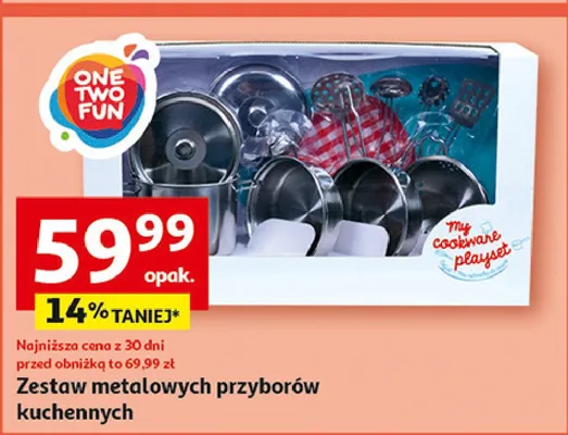 Zastanawiasz si臋, gdzie kupi膰 i ile kosztuje produkt Przybory kuchenne One two fun? Regularnie sprawdzamy, czy jest promocja na ten produkt w Biedronka, Lidl, Kaufland, Auchan, Netto, Makro i innych sklepach. Aktualnie nie posiadamy ofert promocyjnych na ten produkt.