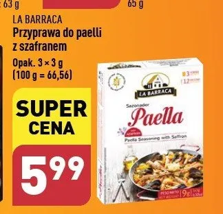 Cena produktu r贸偶ni si臋 w zale偶no艣ci od wybranego sklepu. Niestety nie posiadamy danych o aktualnych promocjach, jednak w艣r贸d archiwalnych ofert Przyprawa do paelli z szafranem La barraca kosztuje od 5,99 z艂.