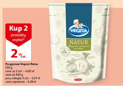 Zastanawiasz si臋, gdzie kupi膰 i ile kosztuje produkt Przyprawa Vegeta natur? Regularnie sprawdzamy, czy jest promocja na ten produkt w Biedronka, Lidl, Kaufland, Auchan, Netto, Makro i innych sklepach. Aktualnie posiadamy 2 oferty promocyjne na ten produkt. Ceny zaczynaj膮 si臋 od 8,99z艂!