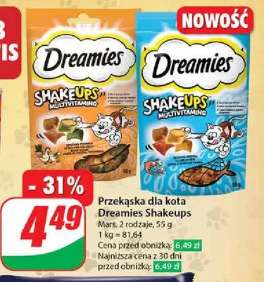 Ile kosztuje Przysmak dla kota dr贸b i kocimi臋tka Dreamies shake ups?