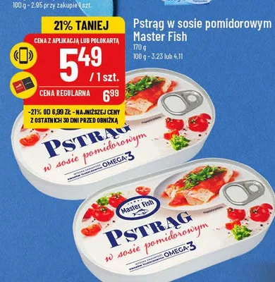 Przegl膮daj podobne oferty promocyjne do Pstr膮g w sosie pomidorowym Master fish!