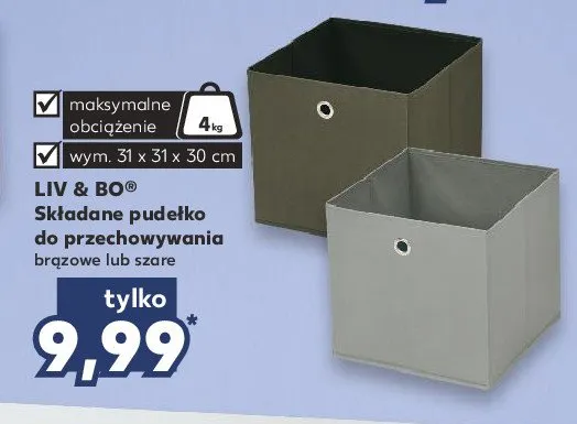 Cena produktu r贸偶ni si臋 w zale偶no艣ci od wybranego sklepu. Niestety nie posiadamy danych o aktualnych promocjach, jednak w艣r贸d archiwalnych ofert Pude艂ko sk艂adane 31 x 31 x 30 cm br膮zowe Liv & bo kosztuje od 9,99 z艂.