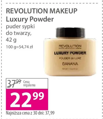 Cena produktu r贸偶ni si臋 w zale偶no艣ci od wybranego sklepu. Niestety nie posiadamy danych o aktualnych promocjach, jednak w艣r贸d archiwalnych ofert Puder bananowy Makeup revolution luxury powder Revolution make-up kosztuje od 22,99 z艂.