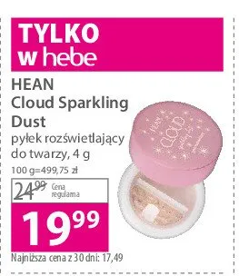 Cena produktu r贸偶ni si臋 w zale偶no艣ci od wybranego sklepu. Niestety nie posiadamy danych o aktualnych promocjach, jednak w艣r贸d archiwalnych ofert Py艂ek roz艣wietlaj膮cy Hean Hean cosmetics kosztuje od 17,99 z艂 do 19,99 z艂.