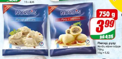 Cena produktu r贸偶ni si臋 w zale偶no艣ci od wybranego sklepu. Niestety nie posiadamy danych o aktualnych promocjach, jednak w艣r贸d archiwalnych ofert Pyzy z mi臋sem Nordis kosztuje od 3,99 z艂.