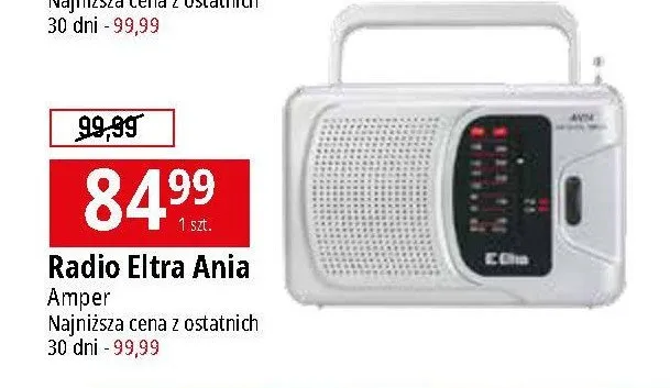 Cena produktu r贸偶ni si臋 w zale偶no艣ci od wybranego sklepu. Niestety nie posiadamy danych o aktualnych promocjach, jednak w艣r贸d archiwalnych ofert Radio ania Eltra kosztuje od 79,99 z艂 do 89,99 z艂.