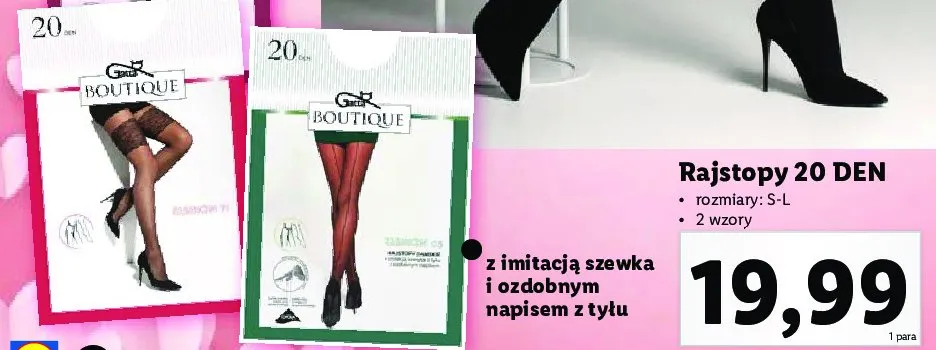 Zastanawiasz si臋, gdzie kupi膰 i ile kosztuje produkt Rajstopy boutique classica 20 den Gatta? Regularnie sprawdzamy, czy jest promocja na ten produkt w Biedronka, Lidl, Kaufland, Auchan, Netto, Makro i innych sklepach. Aktualnie nie posiadamy ofert promocyjnych na ten produkt.