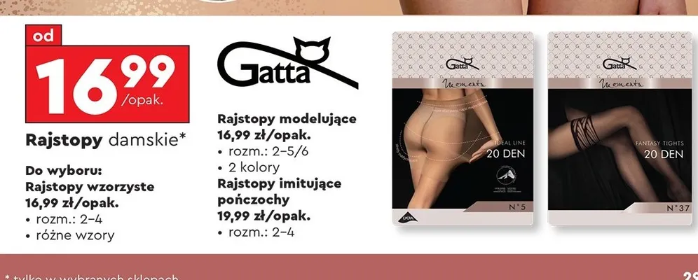 Zastanawiasz si臋, gdzie kupi膰 i ile kosztuje produkt Rajstopy wzorzyste Gatta? Regularnie sprawdzamy, czy jest promocja na ten produkt w Biedronka, Lidl, Kaufland, Auchan, Netto, Makro i innych sklepach. Aktualnie nie posiadamy ofert promocyjnych na ten produkt.
