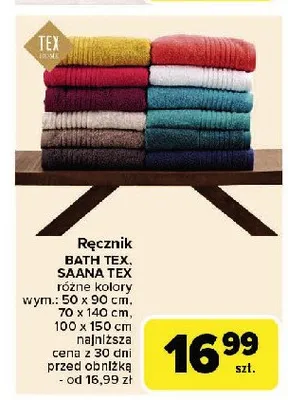 Cena produktu r贸偶ni si臋 w zale偶no艣ci od wybranego sklepu. Niestety nie posiadamy danych o aktualnych promocjach, jednak w艣r贸d archiwalnych ofert R臋cznik bath 50 x 90 cm Tex kosztuje od 16,99 z艂.