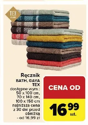 Cena produktu r贸偶ni si臋 w zale偶no艣ci od wybranego sklepu. Niestety nie posiadamy danych o aktualnych promocjach, jednak w艣r贸d archiwalnych ofert R臋cznik bath 70 x 140 cm Tex kosztuje od 16,99 z艂.