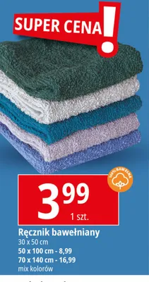 Cena produktu r贸偶ni si臋 w zale偶no艣ci od wybranego sklepu. Niestety nie posiadamy danych o aktualnych promocjach, jednak w艣r贸d archiwalnych ofert R臋cznik bawe艂niany 50 x 100 cm kosztuje od 8,99 z艂 do 10 z艂.