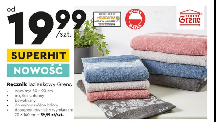 Cena produktu r贸偶ni si臋 w zale偶no艣ci od wybranego sklepu. Produkt R臋cznik bawe艂niany 50 x 90 cm Greno mo偶esz kupi膰 w promocji ju偶 od 29,99 z艂. Najta艅sza oferta, jak膮 mamy w naszej bazie jest z sieci Biedronka. R臋cznik bawe艂niany 50 x 90 cm Greno kosztuje aktualnie 29,99 z艂. Zobacz ofert臋