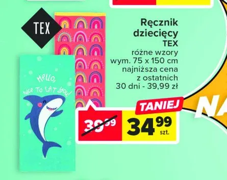 Przegl膮daj podobne oferty promocyjne do R臋cznik dzieci臋cy 75 x 150 cm Tex!