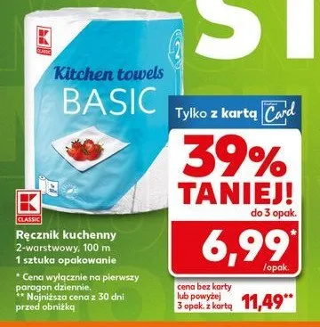 Cena produktu r贸偶ni si臋 w zale偶no艣ci od wybranego sklepu. Niestety nie posiadamy danych o aktualnych promocjach, jednak w艣r贸d archiwalnych ofert R臋cznik kuchenny basic K-classic kosztuje od 6,99 z艂 do 8,99 z艂.