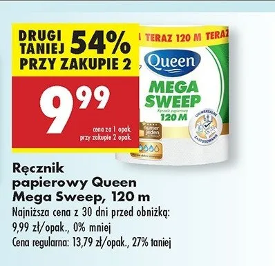Cena produktu r贸偶ni si臋 w zale偶no艣ci od wybranego sklepu. Niestety nie posiadamy danych o aktualnych promocjach, jednak w艣r贸d archiwalnych ofert R臋cznik kuchenny mega sweep 120 m Queen kosztuje od 8,99 z艂 do 9,99 z艂.
