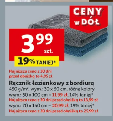 Cena produktu r贸偶ni si臋 w zale偶no艣ci od wybranego sklepu. Niestety nie posiadamy danych o aktualnych promocjach, jednak w艣r贸d archiwalnych ofert R臋cznik 艂azienkowy 50 x 100 cm kosztuje od 10 z艂 do 13,99 z艂.