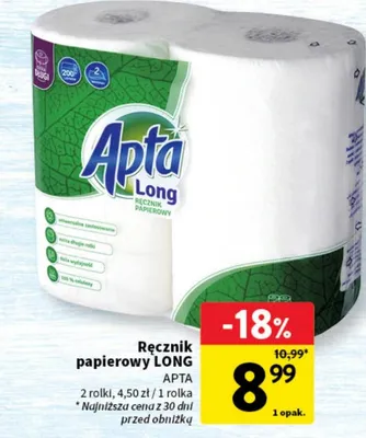 Zastanawiasz si臋, gdzie kupi膰 i ile kosztuje produkt R臋cznik papierowy long Apta? Regularnie sprawdzamy, czy jest promocja na ten produkt w Biedronka, Lidl, Kaufland, Auchan, Netto, Makro i innych sklepach. Aktualnie posiadamy 3 oferty promocyjne na ten produkt. Ceny zaczynaj膮 si臋 od 3,23z艂!