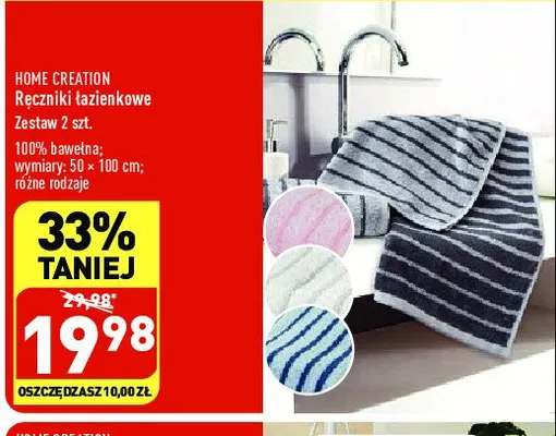 Zastanawiasz si臋, gdzie kupi膰 i ile kosztuje produkt R臋czniki 艂azienkowe 50 x 100 cm Home creation? Regularnie sprawdzamy, czy jest promocja na ten produkt w Biedronka, Lidl, Kaufland, Auchan, Netto, Makro i innych sklepach. Aktualnie posiadamy 1 ofert臋 promocyjn膮 na ten produkt. Ceny zaczynaj膮 si臋 od 2,99z艂!