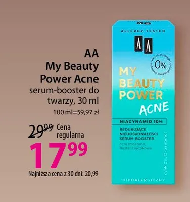 Ile kosztuje Redukuj膮ce niedoskona艂o艣ci serum-booster do twarzy AA MY BEAUTY POWER ACNE?