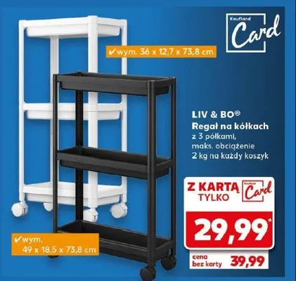 Cena produktu różni się w zależności od wybranego sklepu. Niestety nie posiadamy danych o aktualnych promocjach, jednak wśród archiwalnych ofert Regał łazienkowy na kółkach Liv & bo kosztuje od 29,99 zł do 39,99 zł.